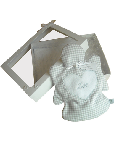 WÄRMEKISSEN "Schutzengel" mit Wunschname in Geschenkbox - Vichykaro - Farbwahl