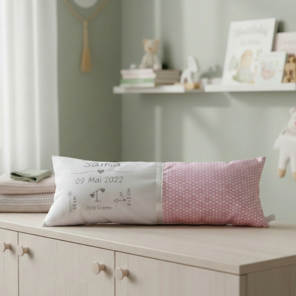 Die individuellen Geburtsdaten machen jedes Kissen einzigartig und verleihen ihm eine ganz persönliche Bedeutung, die ein Leben lang bleibt. Ob als dekorativer Blickfang im Kinderzimmer oder als bleibende Erinnerung für später – dieses Geburtskissen verbindet Herz, Gefühl und Erinnerung auf einzigartige Weise.