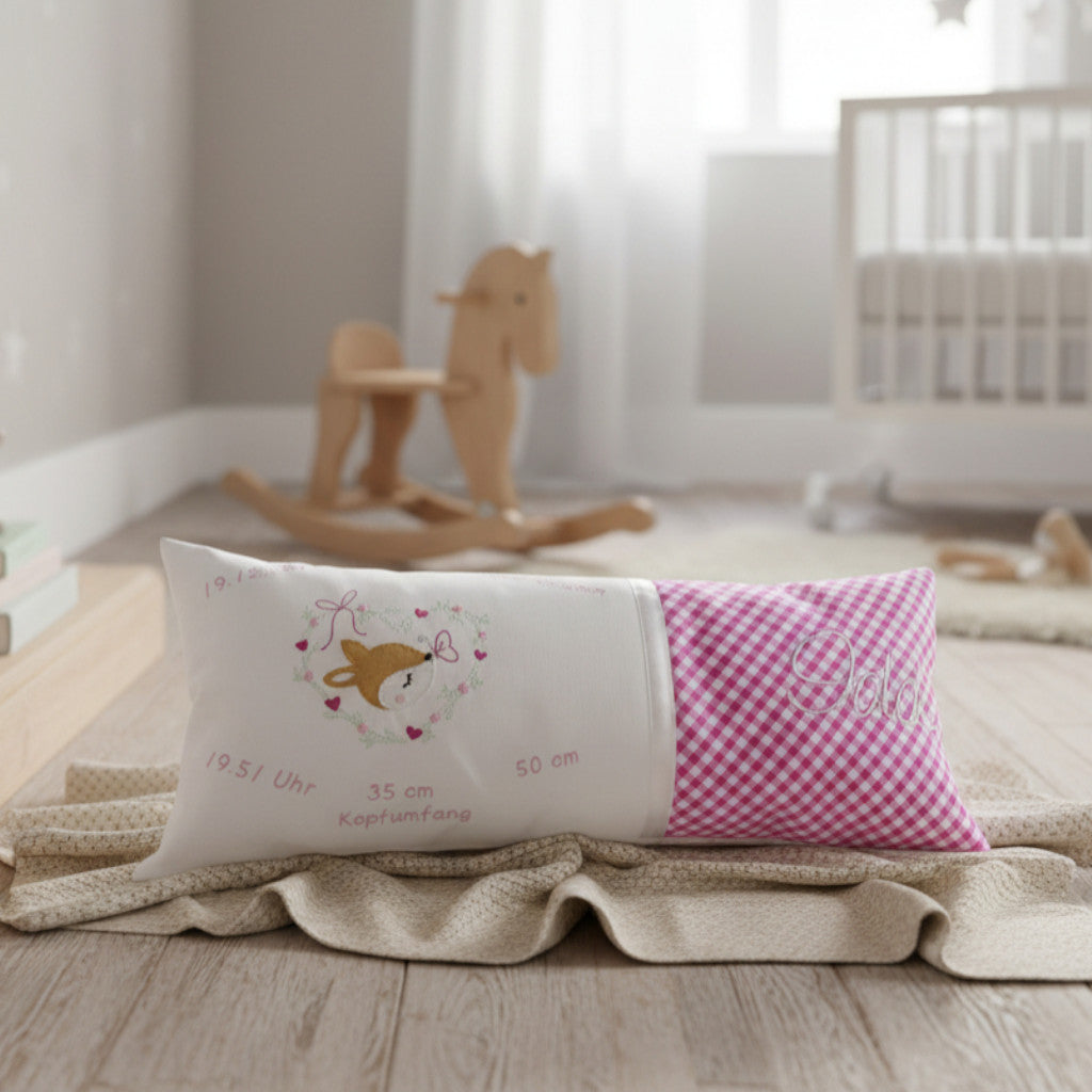 Die individuellen Geburtsdaten machen jedes Kissen einzigartig und verleihen ihm eine ganz persönliche Bedeutung, die ein Leben lang bleibt. Ob als dekorativer Blickfang im Kinderzimmer oder als bleibende Erinnerung für später – dieses Geburtskissen verbindet Herz, Gefühl und Erinnerung auf einzigartige Weise.