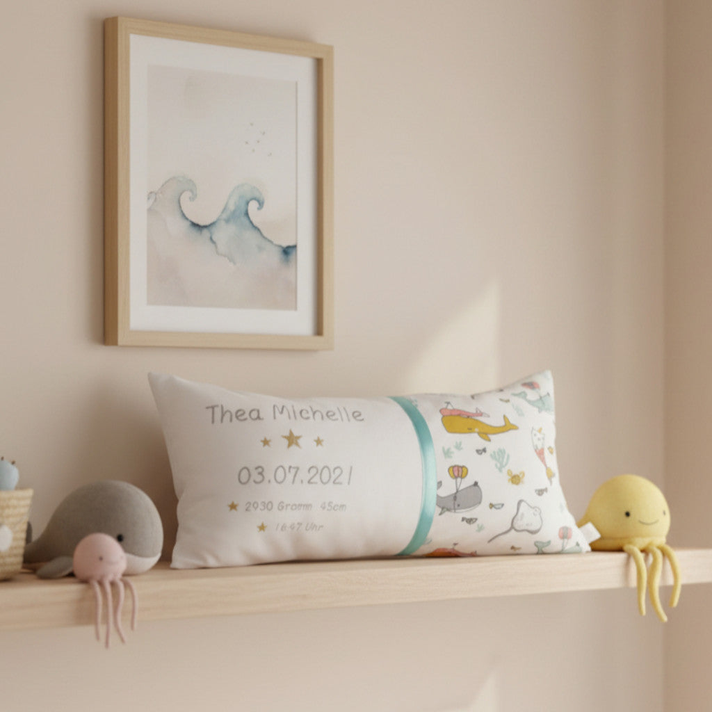 Die individuellen Geburtsdaten machen jedes Kissen einzigartig und verleihen ihm eine ganz persönliche Bedeutung, die ein Leben lang bleibt. Ob als dekorativer Blickfang im Kinderzimmer oder als bleibende Erinnerung für später – dieses Geburtskissen verbindet Herz, Gefühl und Erinnerung auf einzigartige Weise.