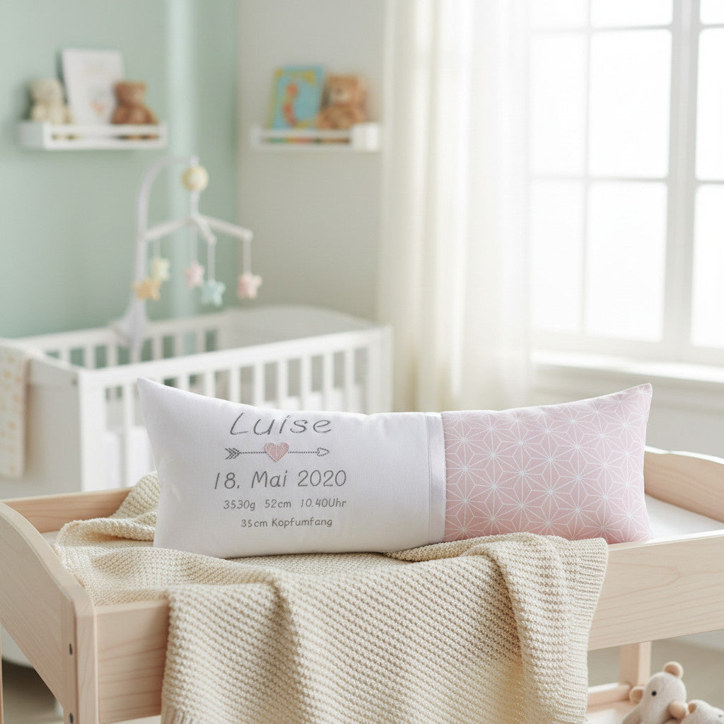 Die individuellen Geburtsdaten machen jedes Kissen einzigartig und verleihen ihm eine ganz persönliche Bedeutung, die ein Leben lang bleibt. Ob als dekorativer Blickfang im Kinderzimmer oder als bleibende Erinnerung für später – dieses Geburtskissen verbindet Herz, Gefühl und Erinnerung auf einzigartige Weise.