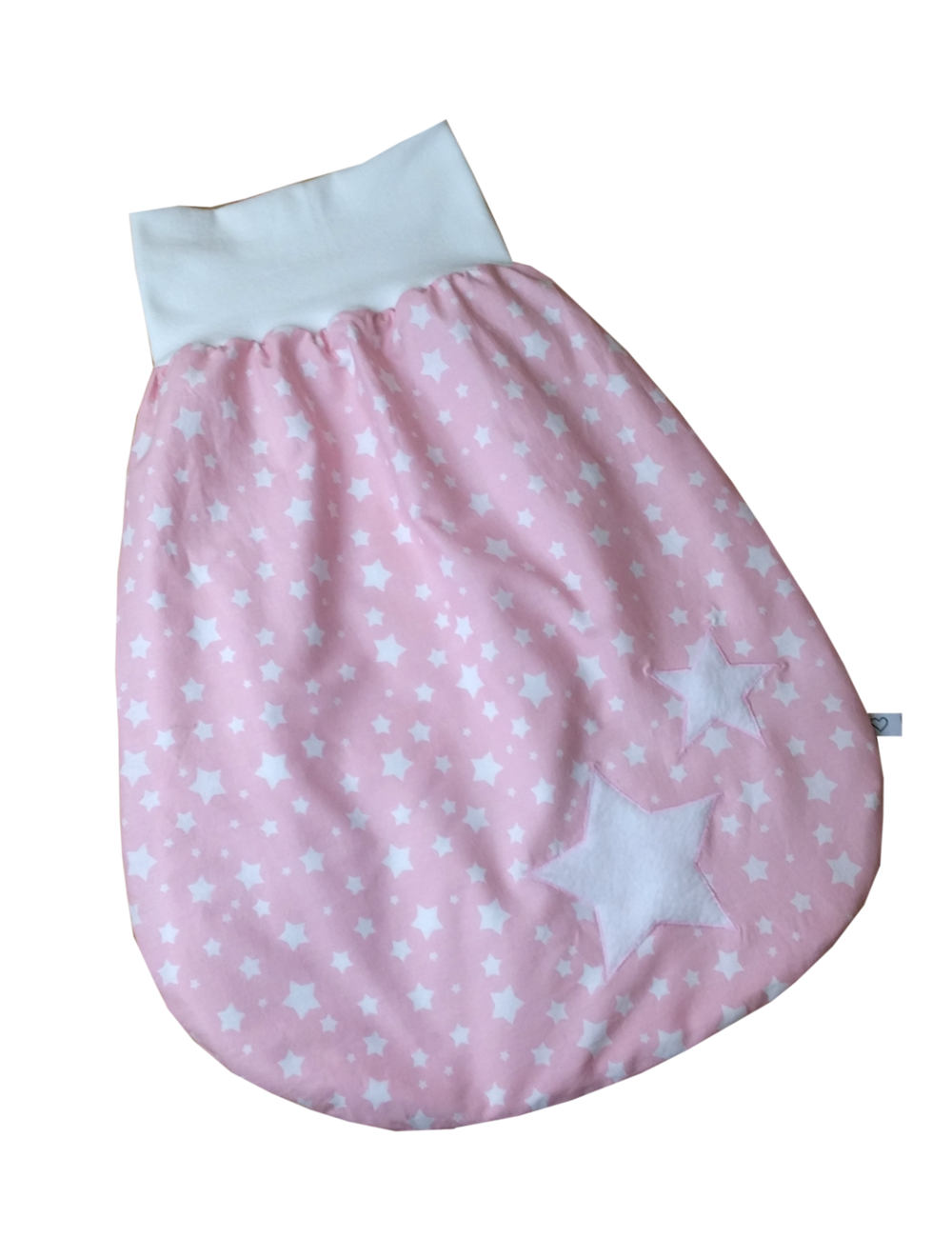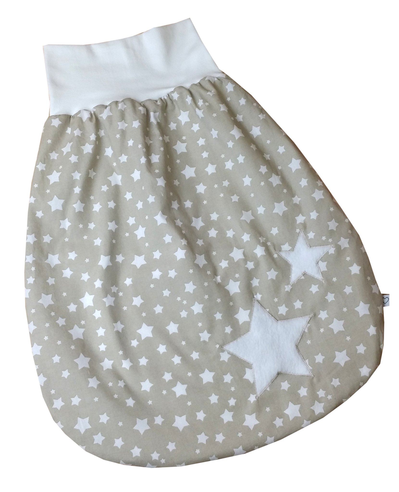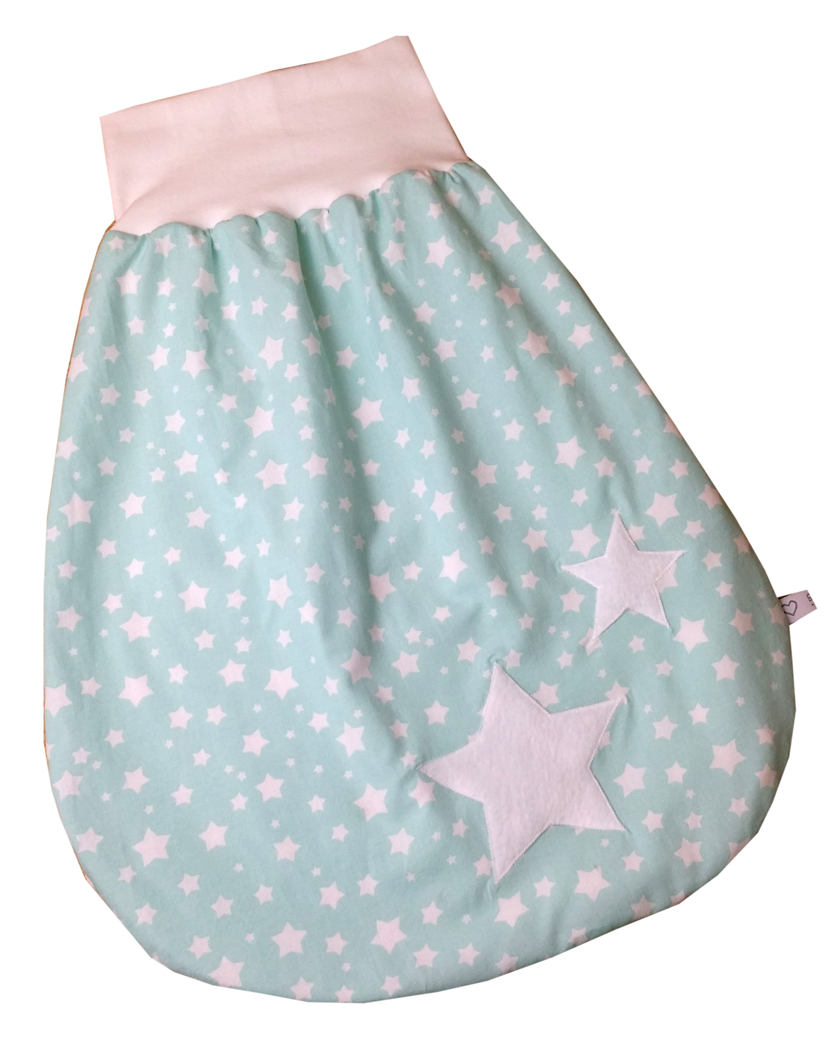 Der Strampelsack ist aus hochwertigen Baumwollstoff gefertigt, als Innenteil wird wahlweise Molton (für die kälteren Tage/Nächte) oder Baumwolle verwendet.