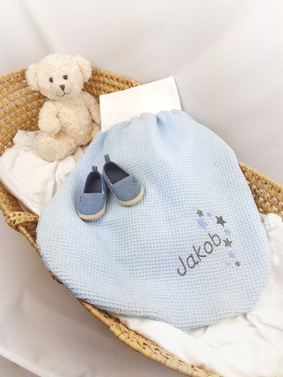 Als ganz besonders Highlight, wird der Strampelsack mit einem Wunschnamen bestickt.