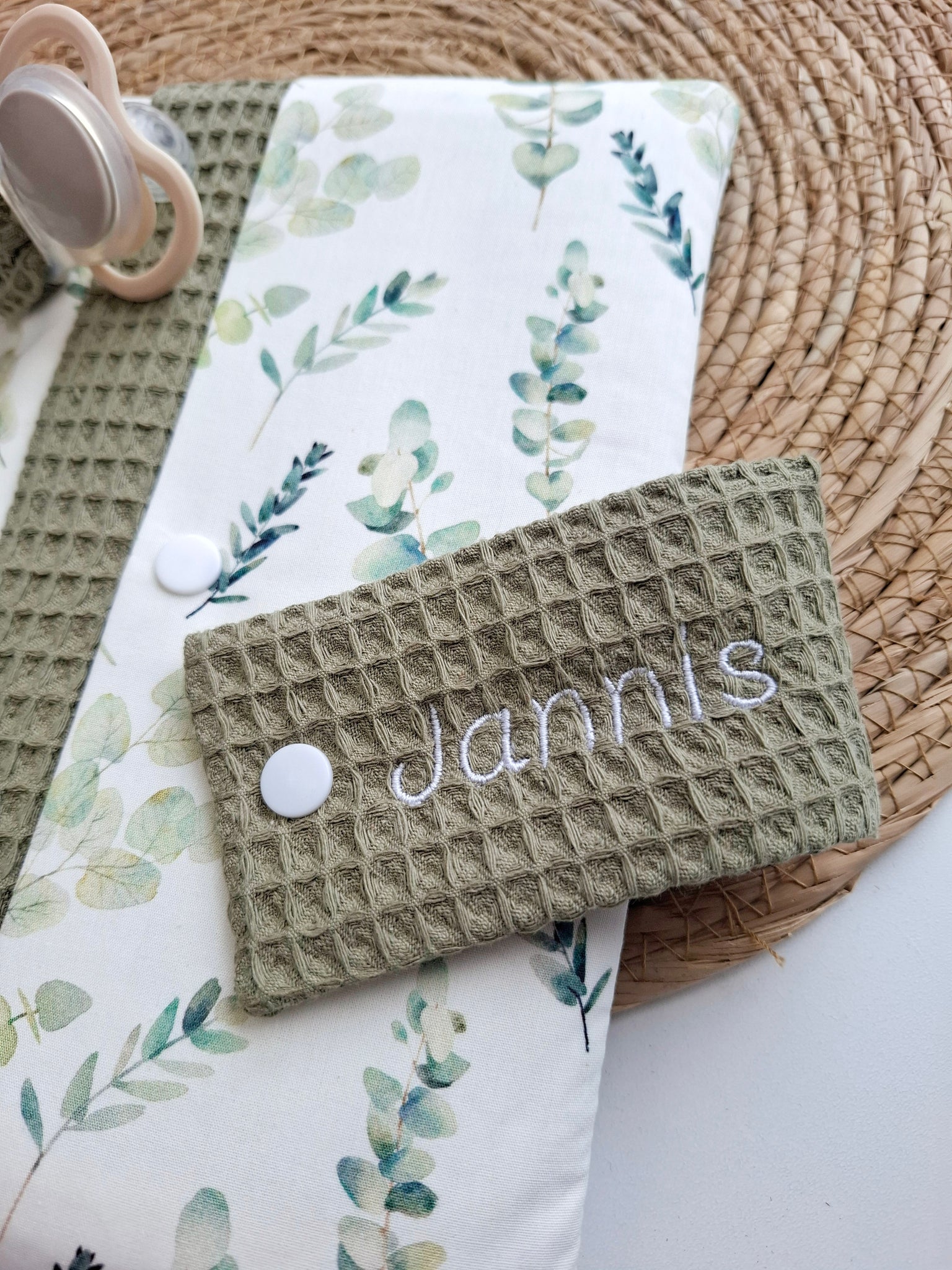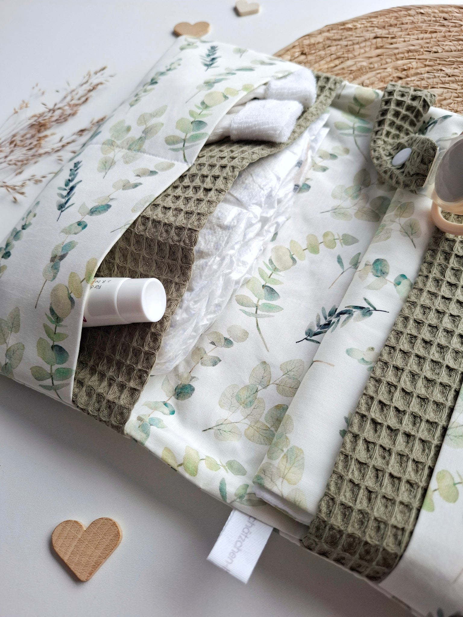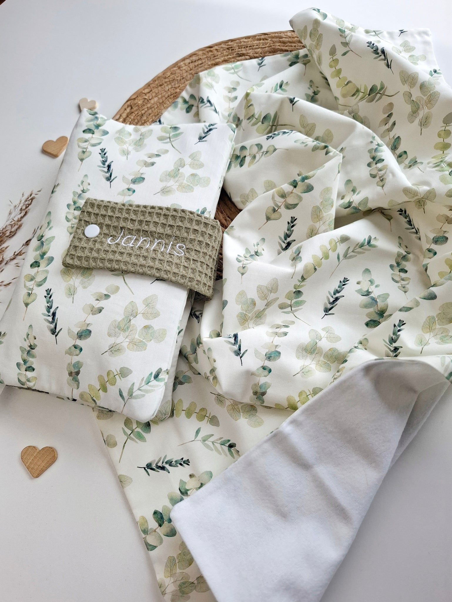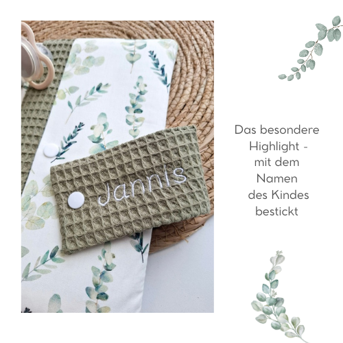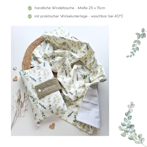WINDELTASCHE "Eukalyptus" mit Wickeldecke & Wunschnamen