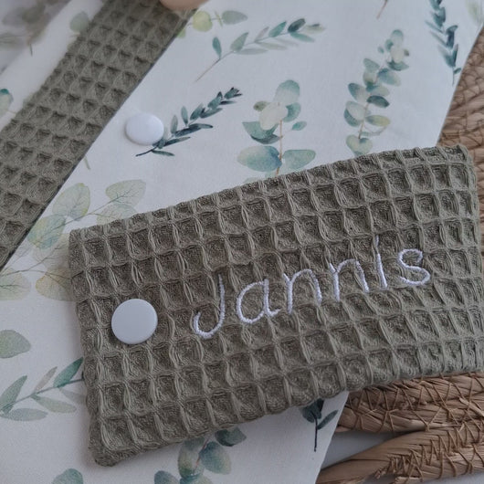 Als ganz besonders Highlight, kann die Windeltasche mit einem Wunschnamen bestickt werden.